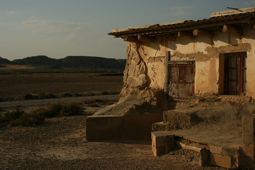 Dans l'atmosphère climatisée et somnolente du train, je me demande comment je vais oublier l'immensité du désert des Bardenas et son relief hors du commun, son soleil orange transperçant les nuages au couchant et venant s'écraser sur des falaises zigzaguant à travers une plaine à laquelle même les champs de blé ne parviennent pas à enlever son caractère sauvage, les jambons de